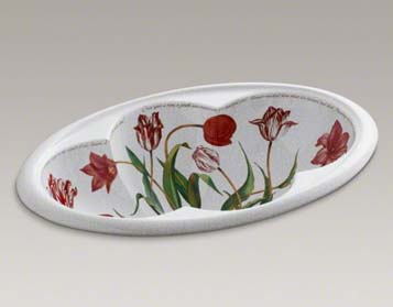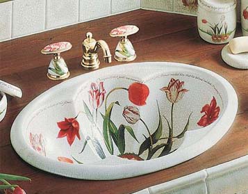 - 64 x 43 cm. - Çatlatılmış beyaz - 17.yy İngiliz çiçek motiflerinden esinlenilmiş - Tezgahüstü akseuar seti de bulunmaktadır