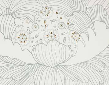 - Beyaz zemin üzerine 18. yy. Çin esintili metalik çiçek desenlerinin modern yansıması