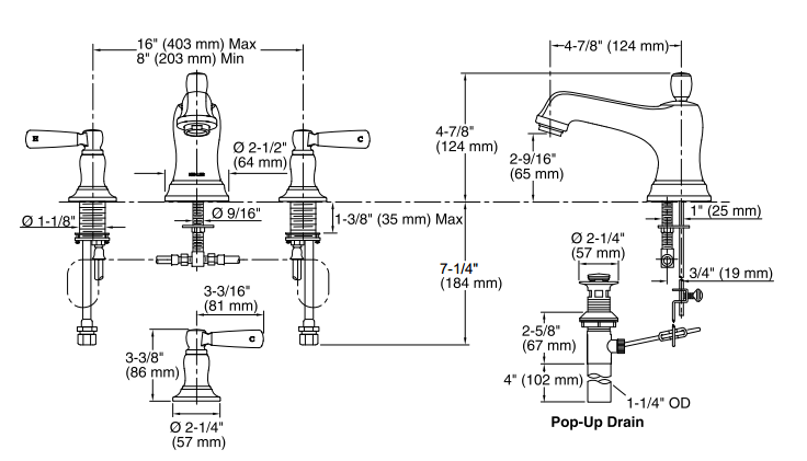 3 Delikli Ankastre Lavabo Bataryaları