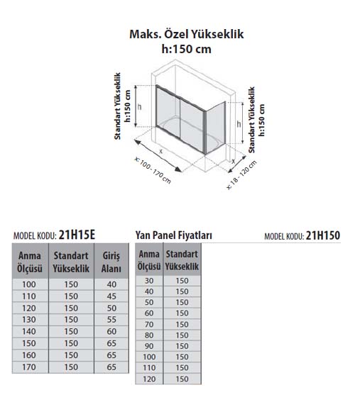 - Küvet Üzeri Kabin İçin