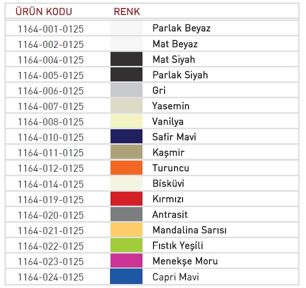 - Armatür deliksiz, su taşma deliksiz - Tek armatür delikli, su taşma deliksiz - Sadece tezgah üstü kullanıma uygundur - PUP-UP, seramik sifon kapak verilemekte olup talep olursa bedelli olarak verilmektedir.