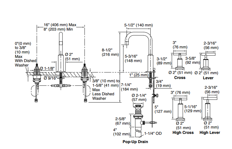 - Gaga yüksekliği 14,8 cm - 8 lt / dak. max.su akışı