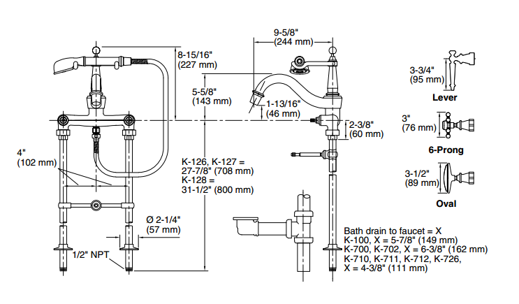 - Duvardan, Ayaklı ve Küvet setinde kullanım alternatifleri