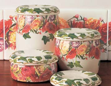 - 3 adet kapaklı porselen kutu ve 1 adet porselen sabunluktan oluşmaktadır