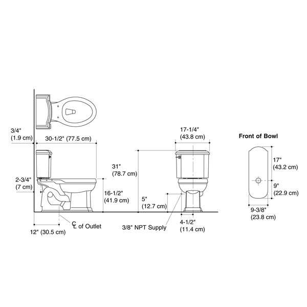 - 77,5 x 43.8 x 78.7 cm. - Vitreous china - İki parça - Jet temizleme - Krom rezervuar kolu dahildir - Taharat borulu