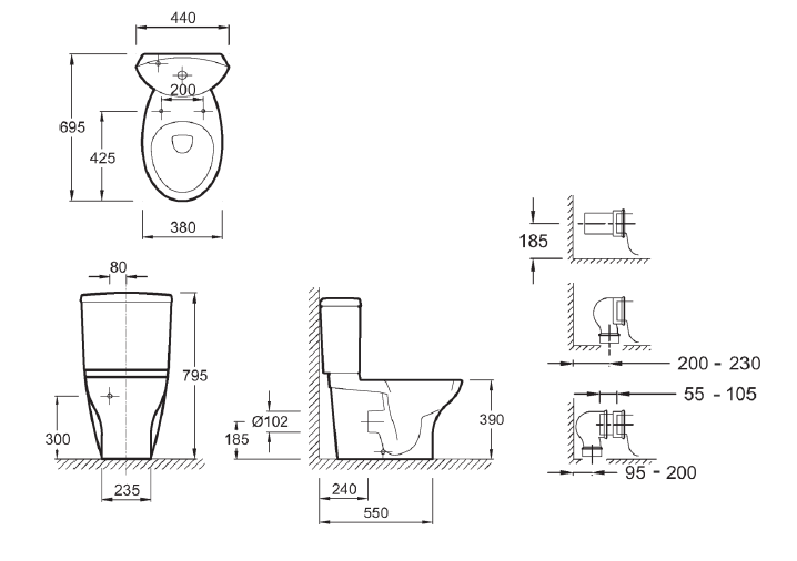 - 69.5 x 38 x 78.5 cm. - Beyaz - Kapak ve iç takım dahil - Rezervuar çift basmalı 3/6 litre - Taharat borulu