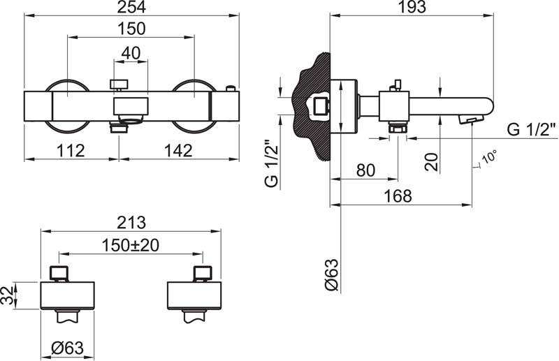 - 1/2’’ duvar bağlantısı