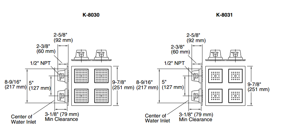 - Yön verilebilen iç yüzeyli Kare Tavan Duşları