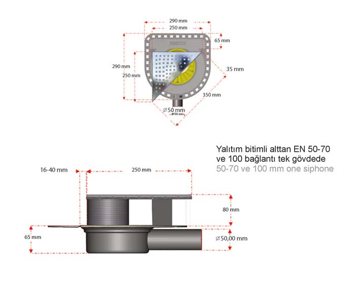 Evimetal tesisat süzgeçleri yalıtım etekli, kare ve yuvarlak kapak seçenekleri, klasik süzgeçlerde ise köşe ve kare seçenekleriyle sunulmaktadır.